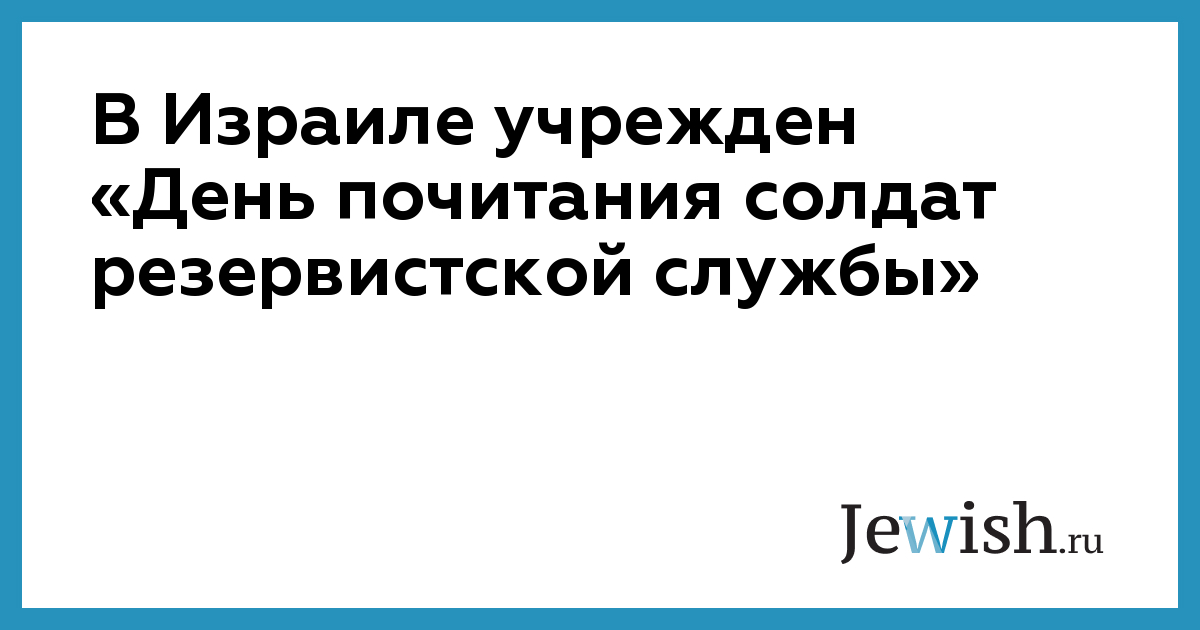 В Израиле учрежден «День почитания солдат резервистской службы»