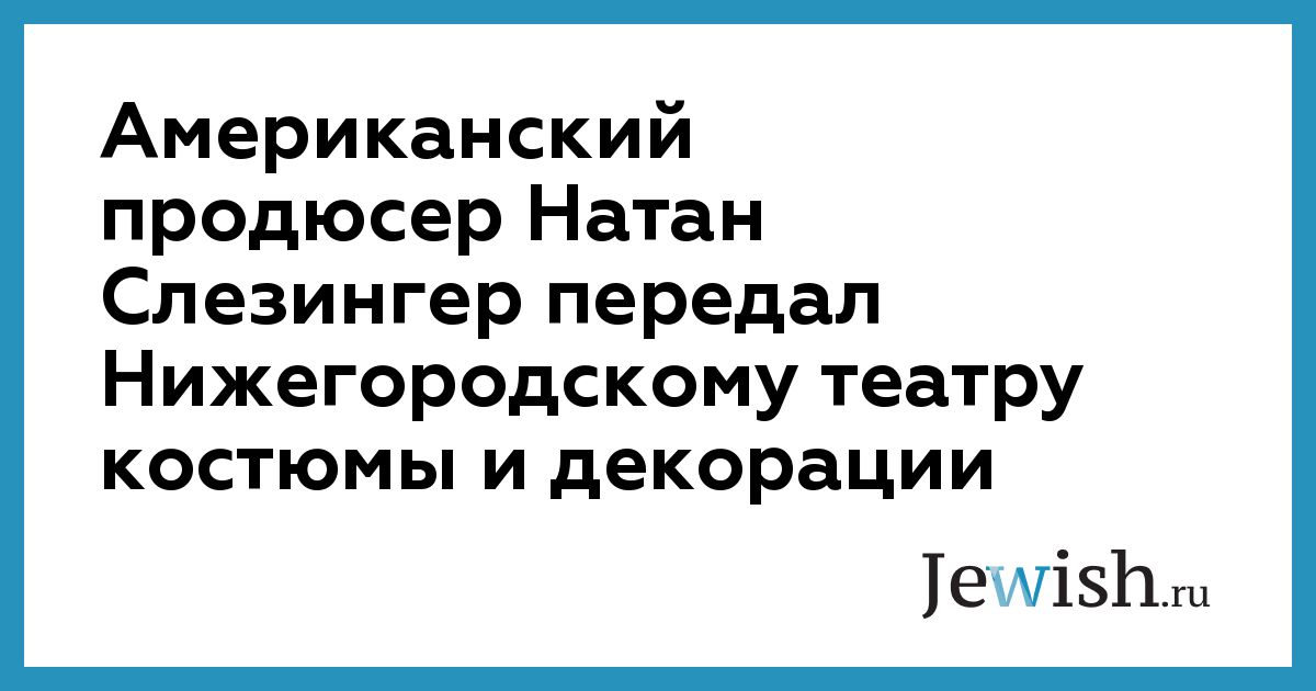 Американский продюсер Натан Слезингер передал Нижегородскому театру костюмы и декорации