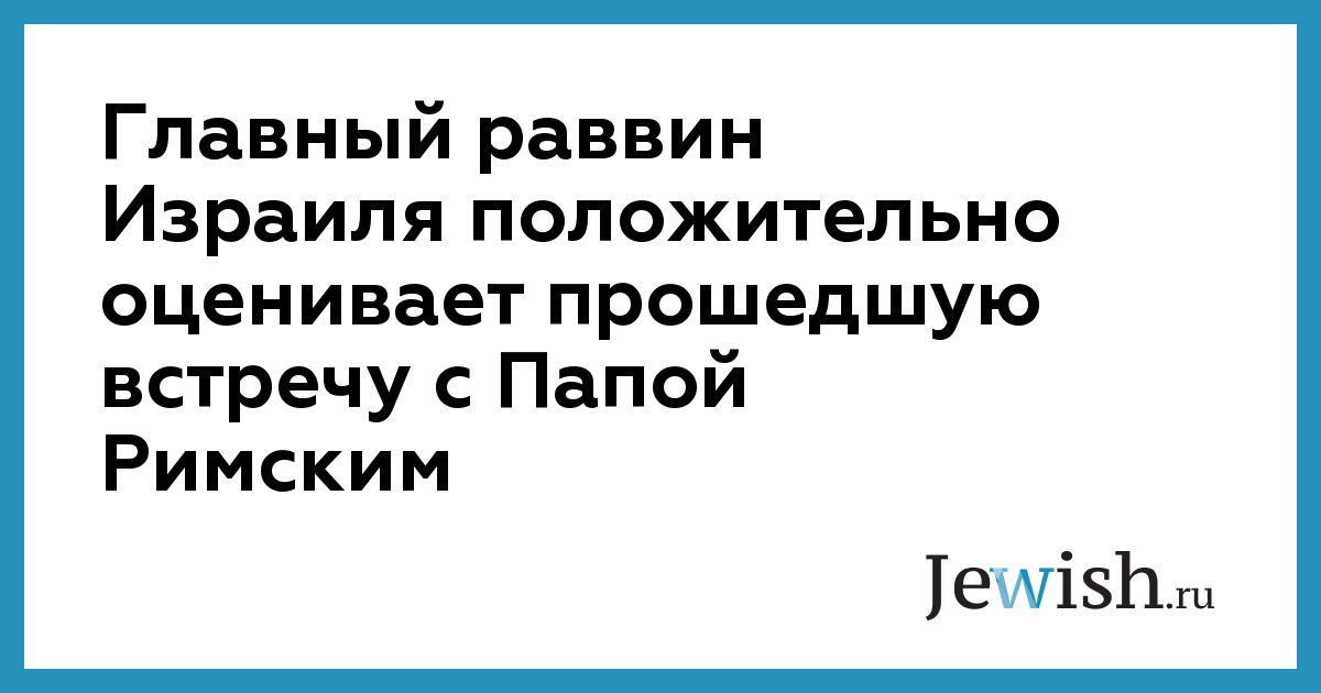 Главный раввин Израиля положительно оценивает прошедшую встречу с Папой Римским