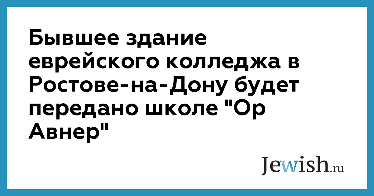 Бывшее здание еврейского колледжа в Ростове-на-Дону будет передано школе "Ор Авнер"