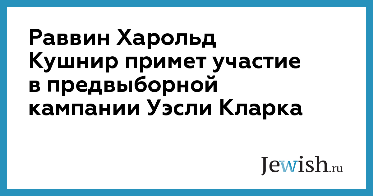 Раввин Харольд Кушнир примет участие в предвыборной кампании Уэсли Кларка