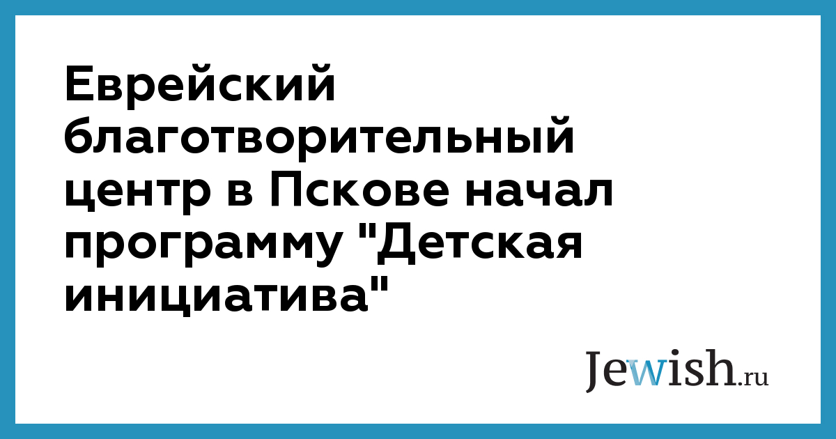 Еврейский благотворительный центр в Пскове начал программу "Детская инициатива"