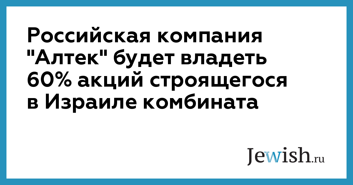 Российская компания "Алтек" будет владеть 60% акций строящегося в Израиле комбината