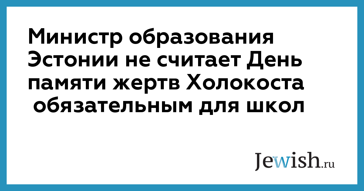 "В этот день уместно вспомнить не только об уничтожении евреев, но и о других преступлениях против человечности, — заявил министр в интервью газете Postimees. — Разные народы рассматривают это в разных контекстах. Эстонцы рассматривают их совместно с тем преступлениями против человечности, которые были совершены на протяжении истории против них". "Я постарался бы дать общие представления о преступлениях против человечности вместе с конкретными примерами, как из холокоста (эстонская газета пишет это слово с маленькой буквы), так и депортаций и им подобных явлений, которыми новейшая история, к сожалению, относительно переполнена", — сказал глава образовательного ведомства.