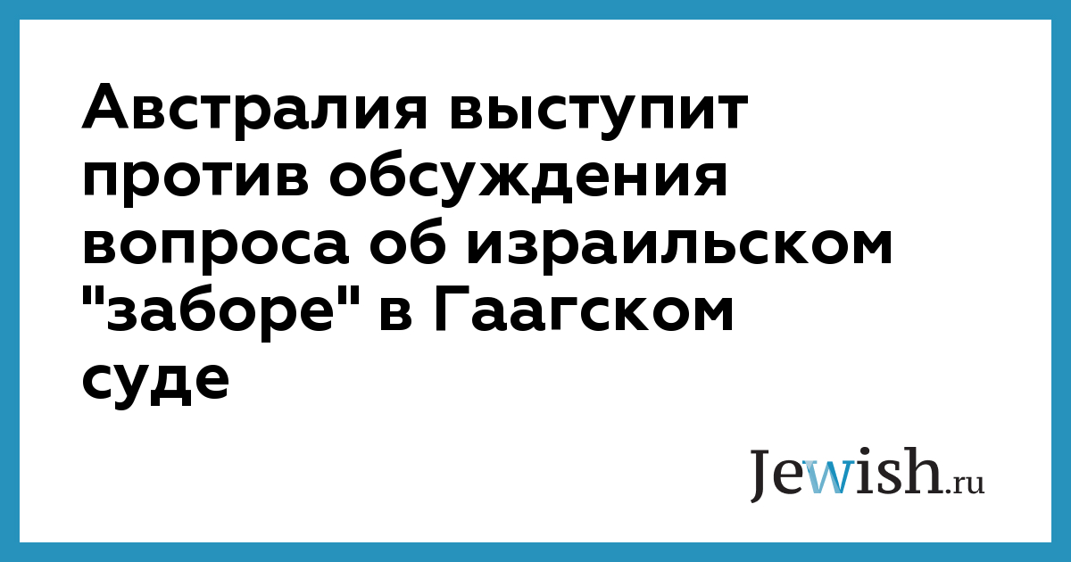 Австралия выступит против обсуждения вопроса об израильском "заборе" в Гаагском суде