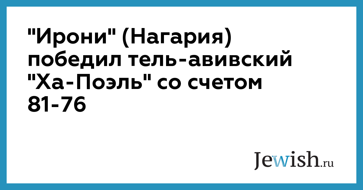 "Ирони" (Нагария) победил тель-авивский "Ха-Поэль" со счетом 81-76