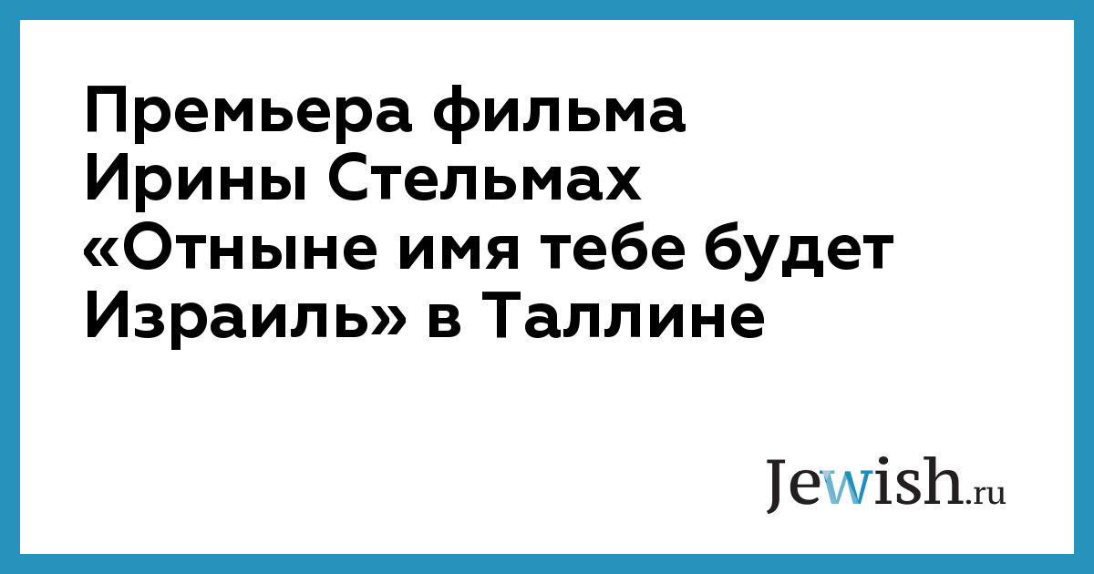 Премьера фильма Ирины Стельмах «Отныне имя тебе будет Израиль» в Таллине