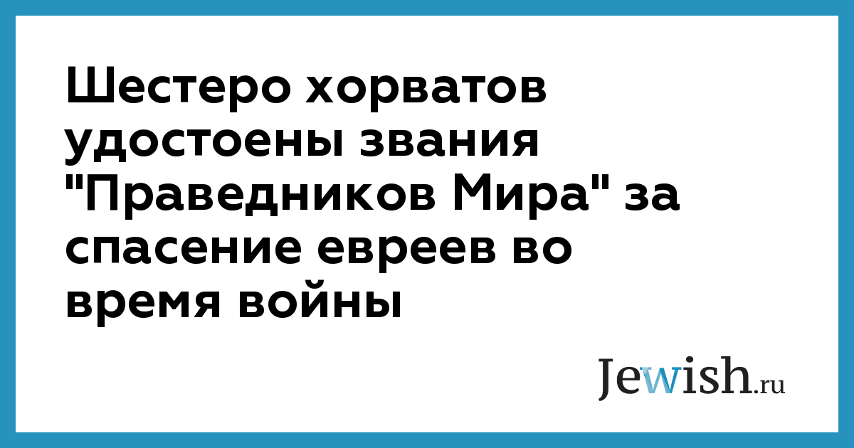 Шестеро хорватов удостоены звания "Праведников Мира" за спасение евреев во время войны