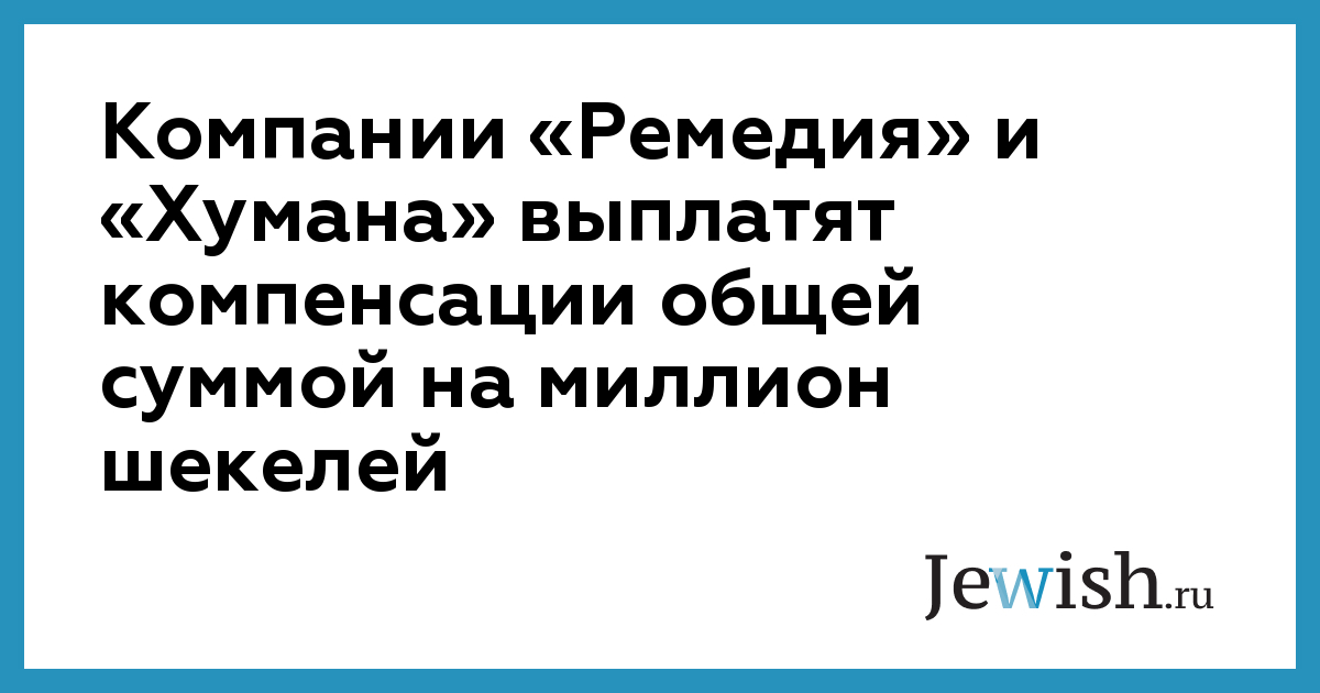 Компании «Ремедия» и «Хумана» выплатят компенсации общей суммой на миллион шекелей