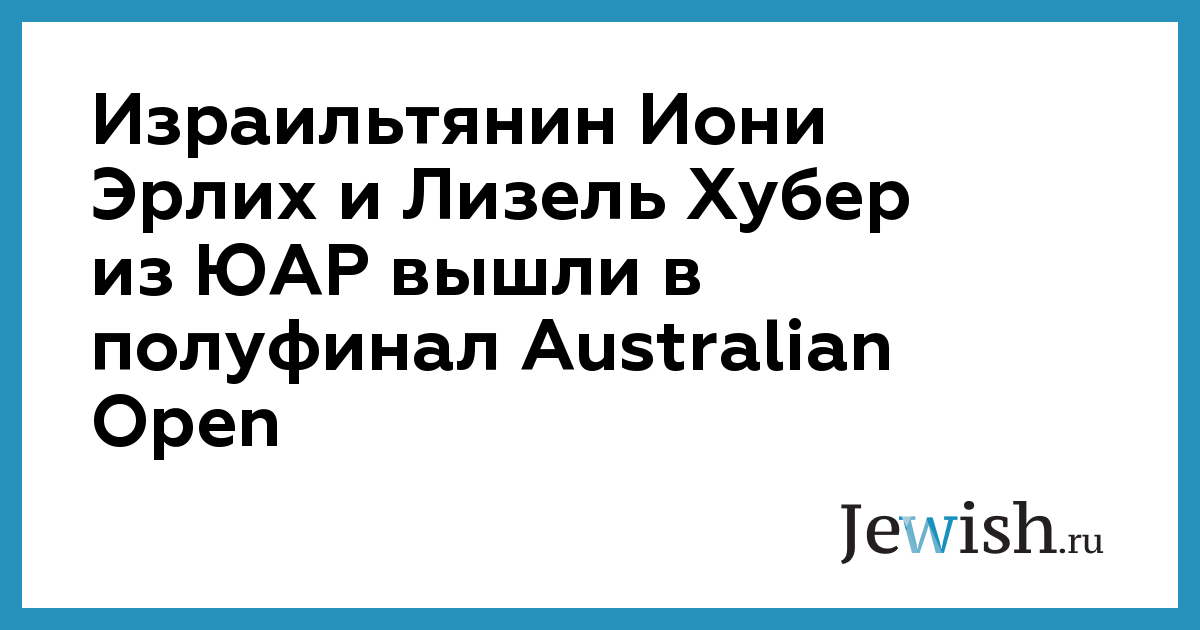 Израильтянин Иони Эрлих и Лизель Хубер из ЮАР вышли в полуфинал Australian Open