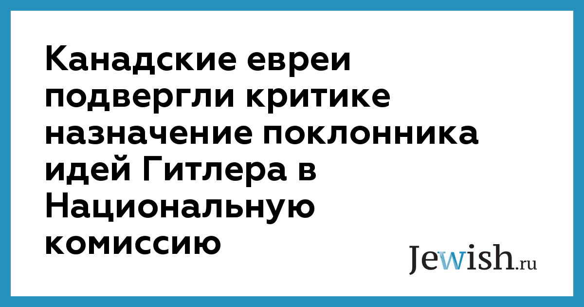 Канадские евреи подвергли критике назначение поклонника идей Гитлера в Национальную комиссию