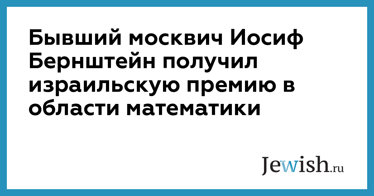 Бывший москвич Иосиф Бернштейн получил израильскую премию в области математики
