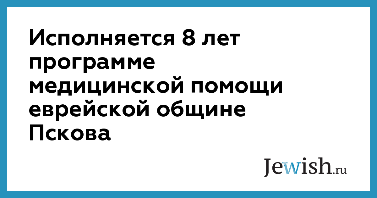 Исполняется 8 лет программе медицинской помощи еврейской общине Пскова