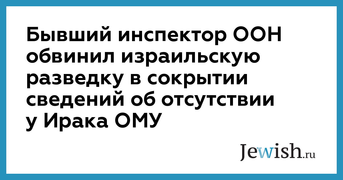 Бывший инспектор ООН обвинил израильскую разведку в сокрытии сведений об отсутствии у Ирака ОМУ