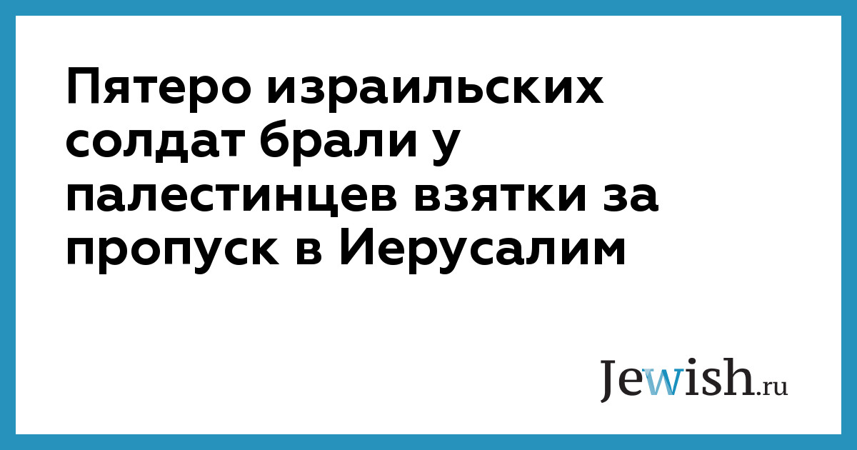 Как сообщили сегодня израильские военные, солдаты принимали от палестинцев деньги, наркотики и еду в обмен на свободный проход на территорию Иерусалима и обратно.