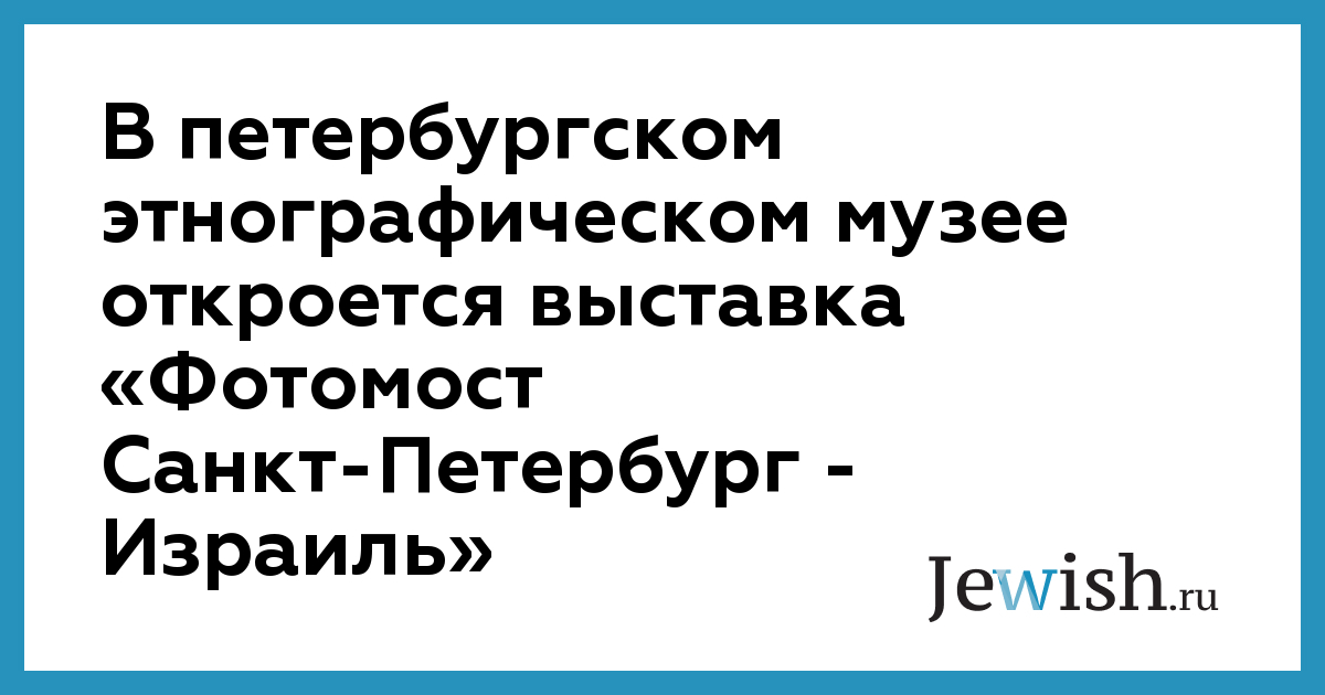 В петербургском этнографическом музее откроется выставка «Фотомост Санкт-Петербург — Израиль»