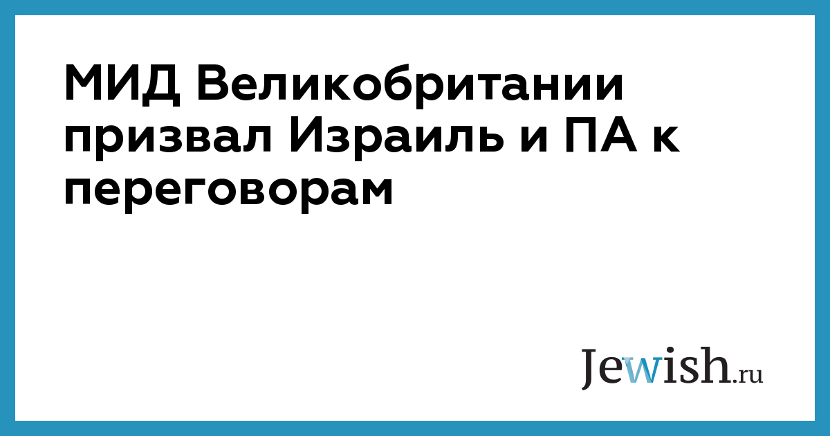 МИД Великобритании призвал Израиль и ПА к переговорам
