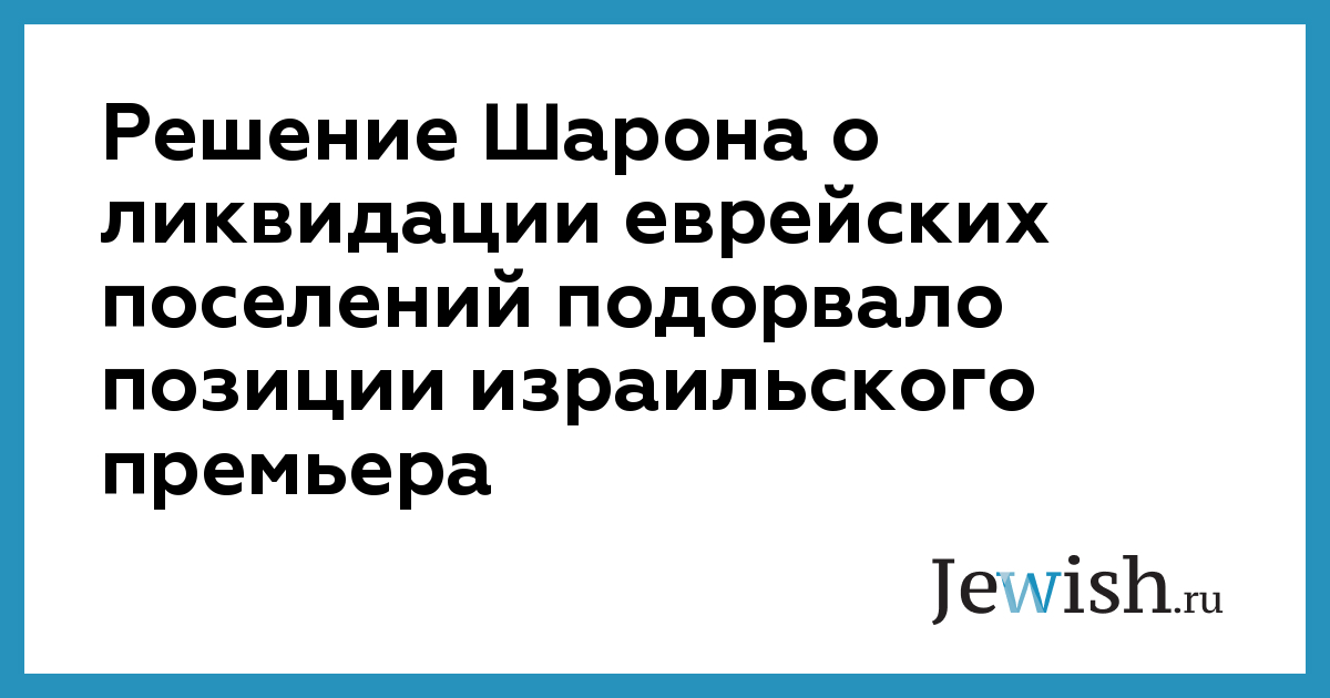Решение Шарона о ликвидации еврейских поселений подорвало позиции израильского премьера