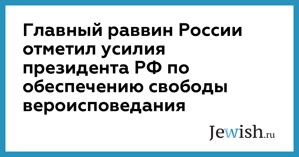 Главный раввин России отметил усилия президента РФ по обеспечению свободы вероисповедания