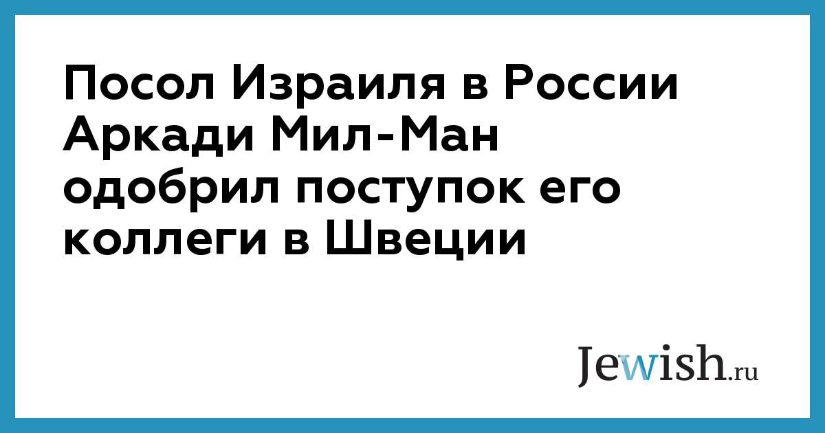 Посол Израиля в России Аркади Мил-Ман одобрил поступок его коллеги в Швеции