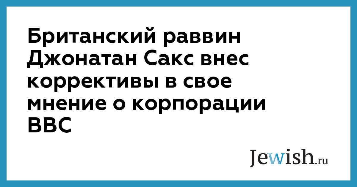 Британский раввин Джонатан Сакс внес коррективы в свое мнение о корпорации ВВС