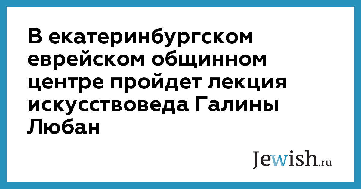 В екатеринбургском еврейском общинном центре пройдет лекция искусствоведа Галины Любан