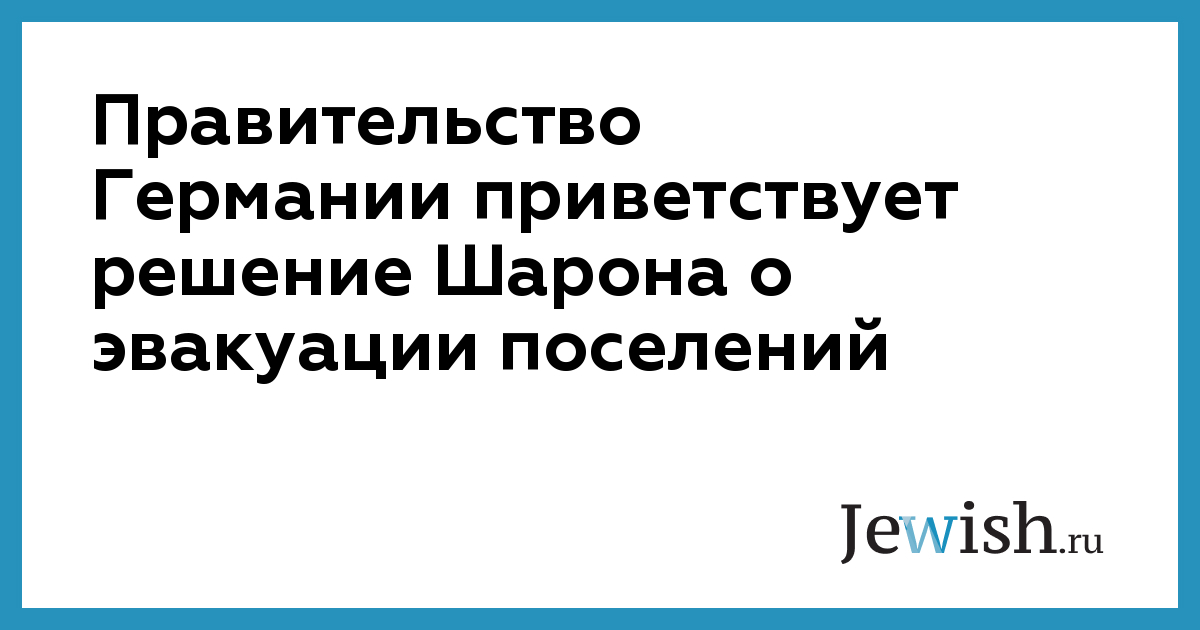 Правительство Германии приветствует решение Шарона о эвакуации поселений