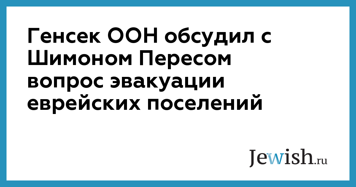 Генсек ООН обсудил с Шимоном Пересом вопрос эвакуации еврейских поселений