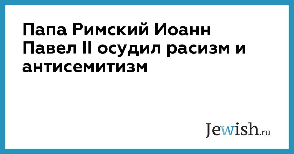 Папа Римский Иоанн Павел II осудил расизм и антисемитизм