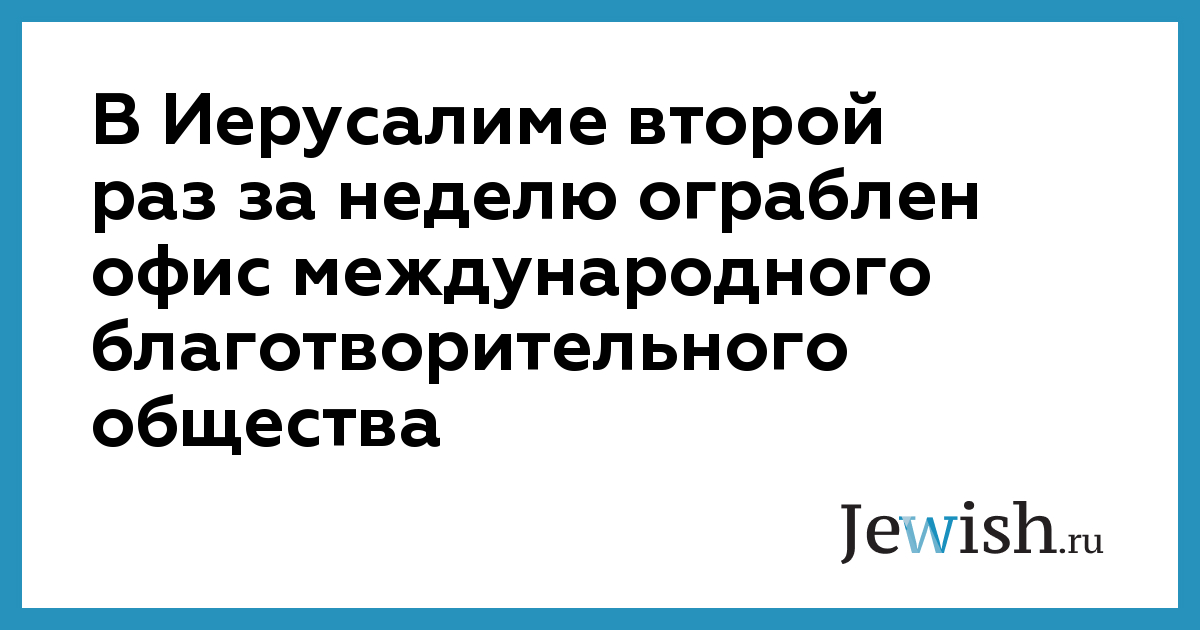 В Иерусалиме второй раз за неделю ограблен офис международного благотворительного общества