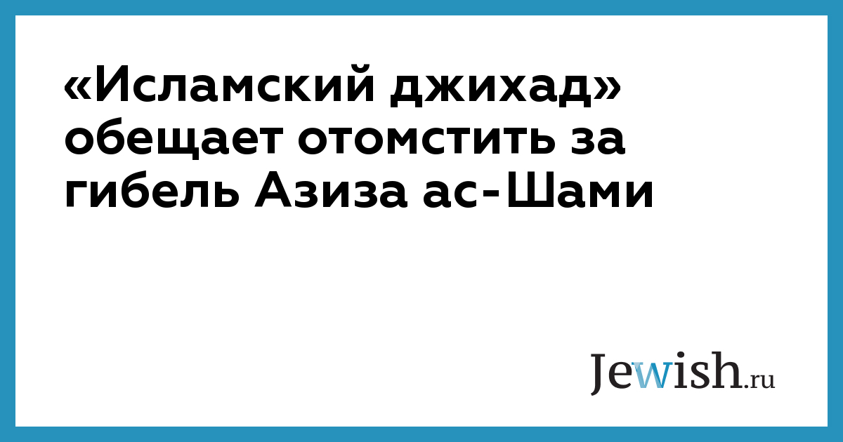 «Исламский джихад» обещает отомстить за гибель Азиза ас-Шами