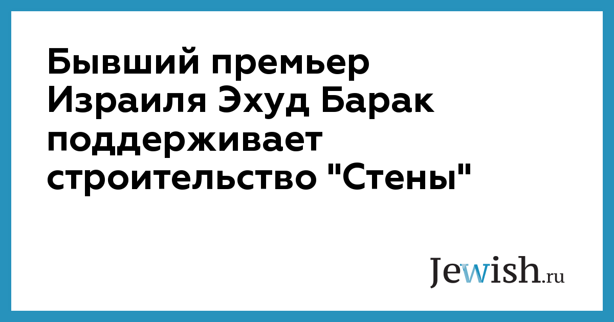 Бывший премьер Израиля Эхуд Барак поддерживает строительство "Стены"