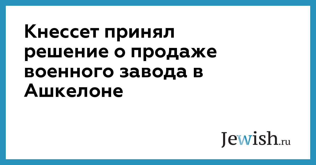 Кнессет принял решение о продаже военного завода в Ашкелоне
