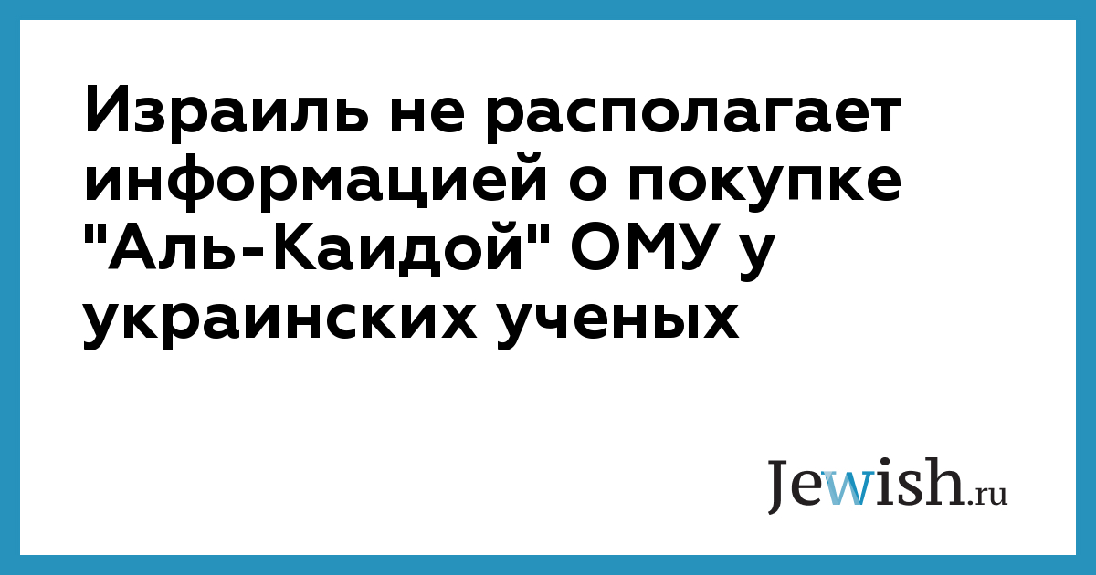 Израиль не располагает информацией о покупке "Аль-Каидой" ОМУ у украинских ученых