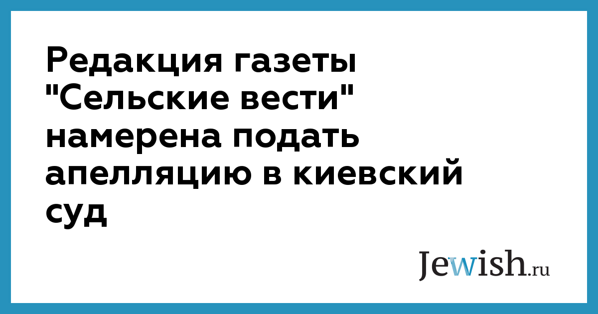 Редакция газеты "Сельские вести" намерена подать апелляцию в киевский суд