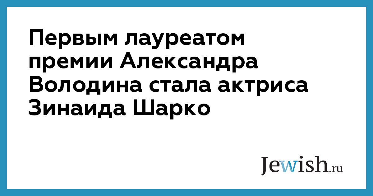 Первым лауреатом премии Александра Володина стала актриса Зинаида Шарко