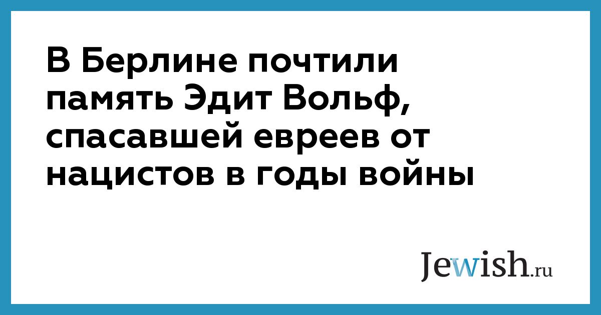 В Берлине почтили память Эдит Вольф, спасавшей евреев от нацистов в годы войны