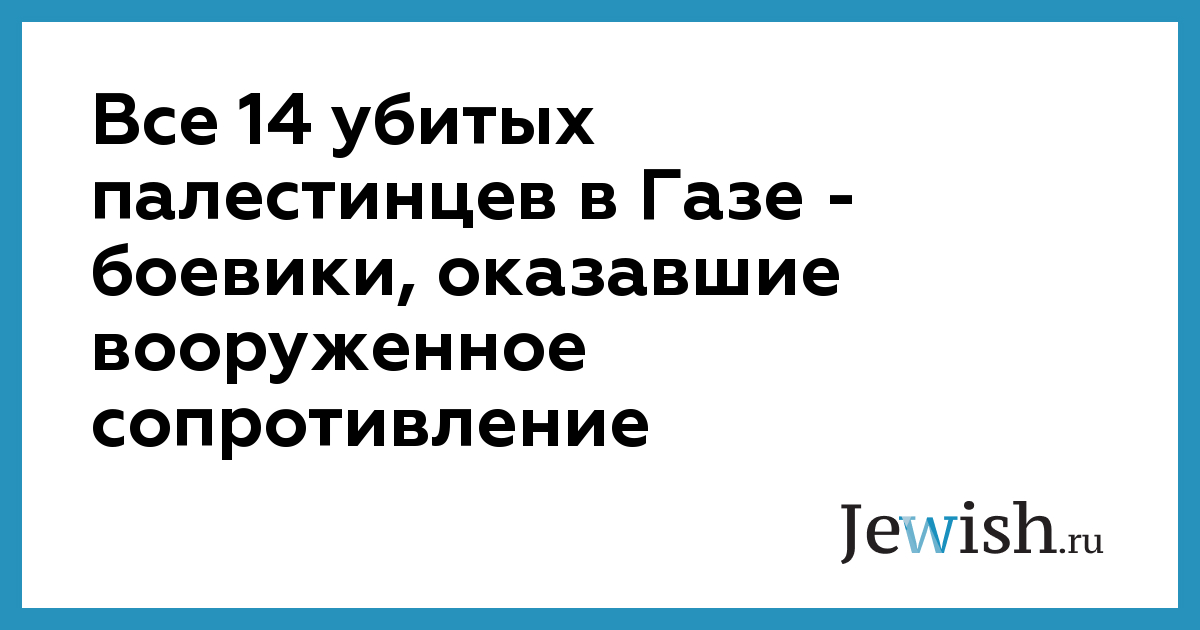 Все 14 убитых палестинцев в Газе — боевики, оказавшие вооруженное сопротивление