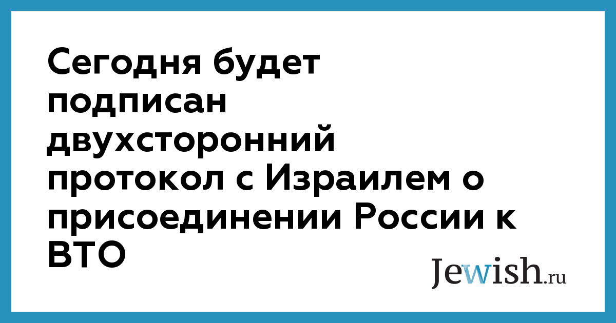 Сегодня будет подписан двухсторонний протокол с Израилем о присоединении России к ВТО