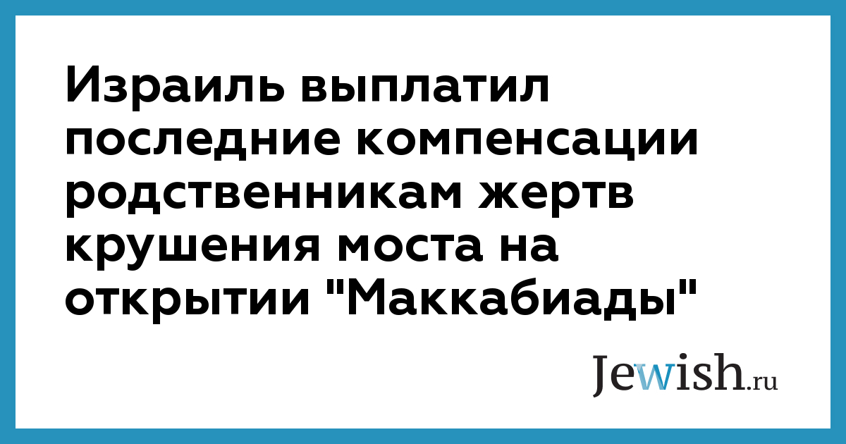 Израиль выплатил последние компенсации родственникам жертв крушения моста на открытии "Маккабиады"