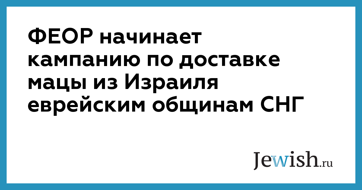 ФЕОР начинает кампанию по доставке мацы из Израиля еврейским общинам СНГ