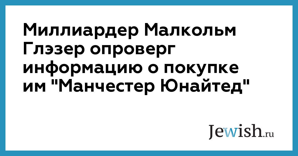 Миллиардер Малкольм Глэзер опроверг информацию о покупке им "Манчестер Юнайтед"