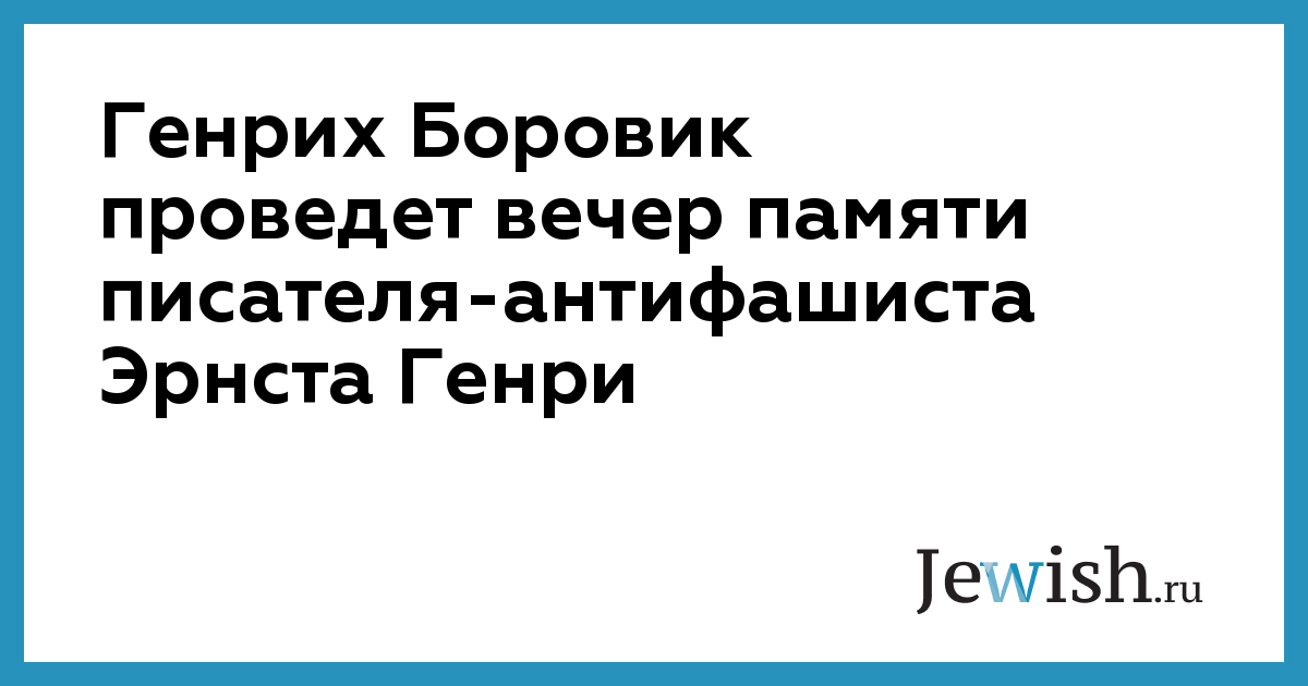 Генрих Боровик проведет вечер памяти писателя-антифашиста Эрнста Генри