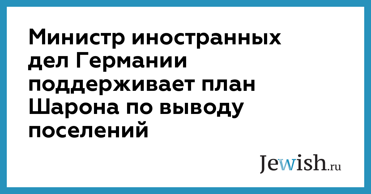 Министр иностранных дел Германии поддерживает план Шарона по выводу поселений
