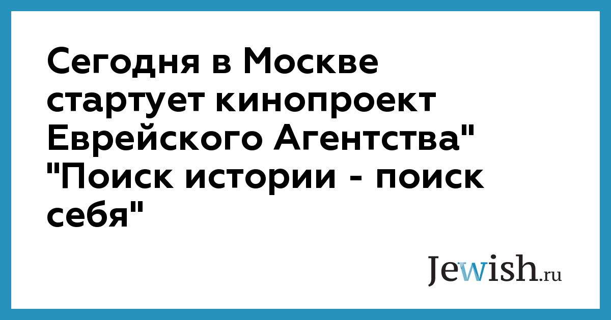 Сегодня в Москве стартует кинопроект Еврейского Агентства" "Поиск истории — поиск себя"