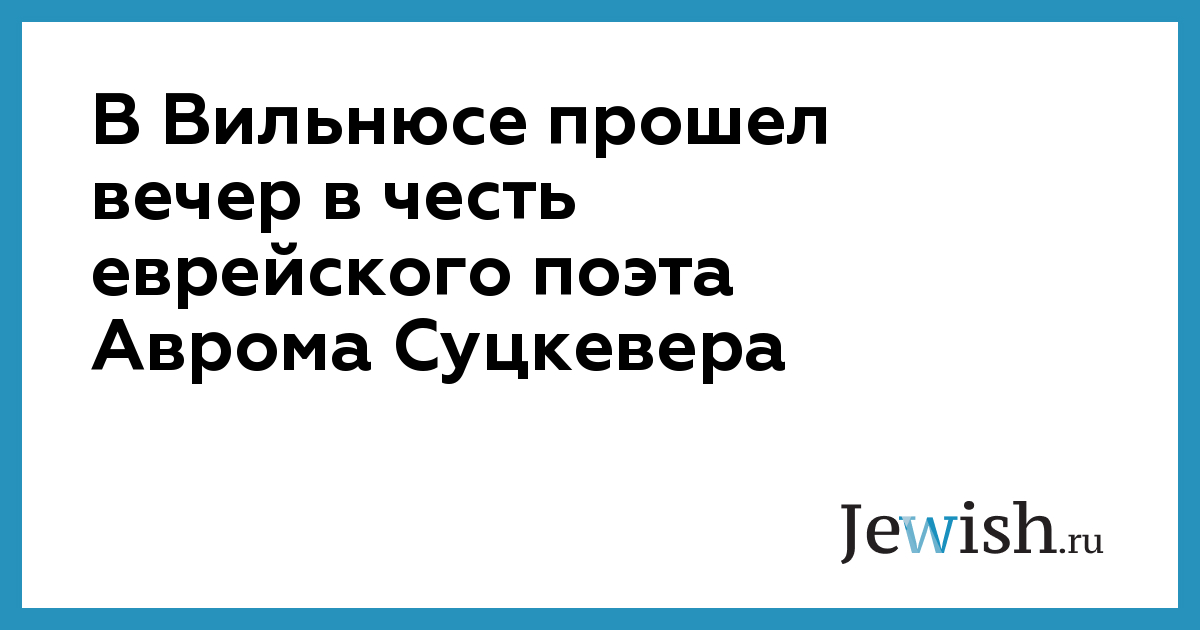 В Вильнюсе прошел вечер в честь еврейского поэта Аврома Суцкевера