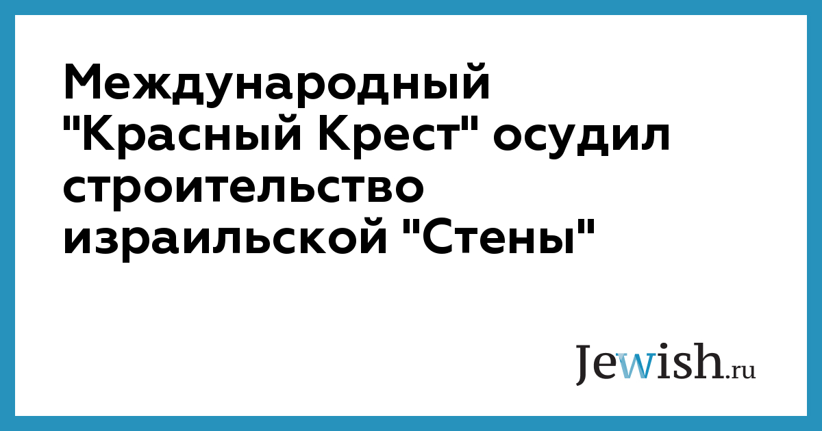 Международный "Красный Крест" осудил строительство израильской "Стены"