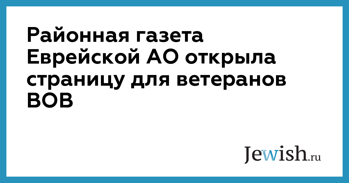 Районная газета Еврейской АО открыла страницу для ветеранов ВОВ