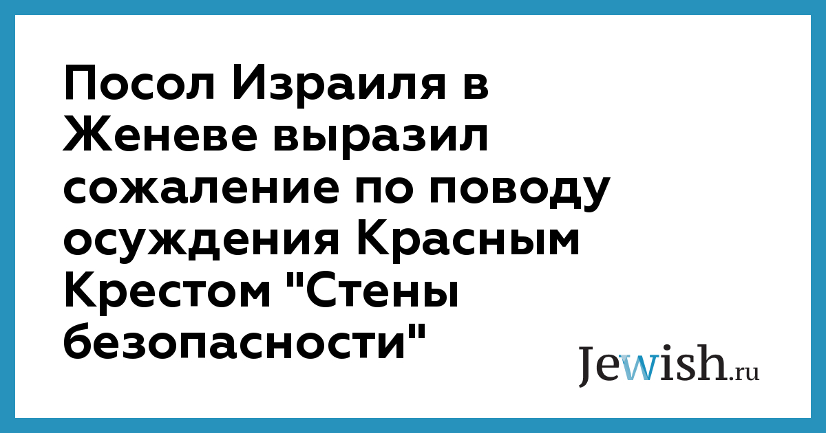 Посол Израиля в Женеве выразил сожаление по поводу осуждения Красным Крестом "Стены безопасности"