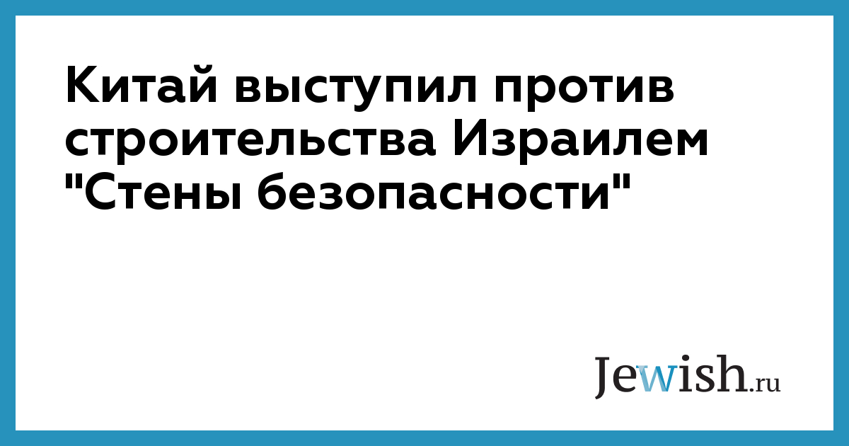 Как заявил сегодня представитель МИД КНР, "сооружение стены не отвечает интересам ближневосточного мирного процесса". Китай считает, что палестино-израильский конфликт должен быть урегулирован политическими средствами. Мы надеемся, что Международный суд в Гааге, рассматривающий правовые последствия сооружения Израилем «заградительного барьера», вынесет справедливое решение, подчеркнул представитель МИД.